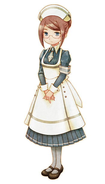 The unflappable Angela is the daughter of Guild Master Veronica, and has inherited her mother's pragmatic, practical nature. She works as a nurse in the town clinic alongside Doctor Marian, and while her bedside manner may be a bit brusque, she's actually very kindhearted.